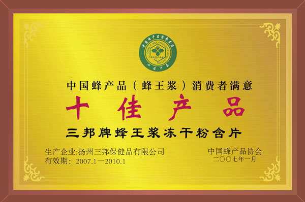 • 中國(guó)蜂產(chǎn)品消費(fèi)者滿意十佳產(chǎn)品